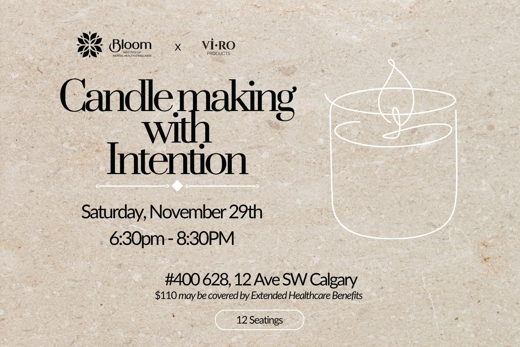 Join Vi.RO Candles and Natasha Dharshi (MSW), for a calming, hands-on candle making workshop designed to support relaxation and self-reflection. This unique session blends creativity with gentle therapeutic guidance, offering you space to slow down, connect, and create with intention.
